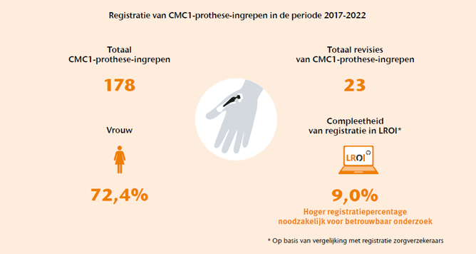 De huidige registratie van prothesen aan het duimbasisgewricht (CMC1) is veel te beperkt om betrouwbare uitspraken te doen over het resultaat van deze prothese-ingrepen. Een hoger percentrage geregistreerde CMC1-prothese-ingrepen is van belang om op bewijs gebaseerde beslissingen te kunnen nemen en goed onderzoek mogelijk te maken. Hoe completer de registratie hoe geschikter de data zijn voor onderzoek en hoe beter de bewijslast.