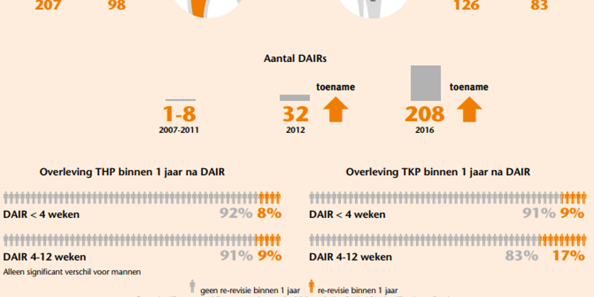 Het onderzoek is uitgevoerd met LROI-data door Barry van der Ende, Jakob van Oldenrijk, Max Reijman, Peter Croughs, Liza van Steenbergen, Jan Verhaar en Koen Bos. Zij concludeerden dat deze studie geen significant verschil laat zien in re-revisiepercentage binnen 1 jaar na een DAIR procedure met verwisselen van mobiele componenten die werd uitgevoerd binnen 4 weken of tussen 4 en 12 weken na plaatsen van primaire totale heup- of knieprothese. Bij een infectie lijkt een DAIR procedure een goede behandeling tot ten minste 3 maanden na de primaire ingreep.