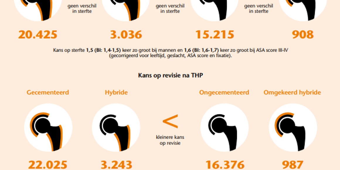Het onderzoek is uitgevoerd met LROI-data door Esther Bloemheuvel, Liza van Steenbergen en Bart Swierstra. Zij concludeerden dat er een vergelijkbare mortaliteit maar een hogere kans op revisie is bij een ongecementeerde THP bij patiënten van 80 jaar en ouder, ten opzichte van een gecementeerde THP. Daarom hebben gecementeerde THP’s in deze leeftijdscategorie de voorkeur.