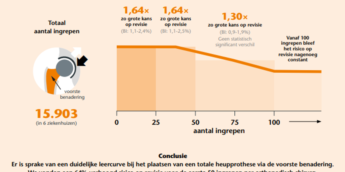 Het onderzoek is uitgevoerd met LROI-data door Rinne Peters, Bas ten Have, Kyrill Rykov, Liza van Steenbergen, Hein Putter, Marijn Rutgers, Stan Vos, Bob van Steijnen, Rudolf Poolman, Stephan Vehmeijer en Wierd Zijlstra. Zij concludeerden dat er sprake is van een duidelijke leercurve bij het plaatsen van een totale heupprothese via de voorste benadering. Ze vonden een 64% verhoogd risico op revisie voor de eerste 50 ingrepen per orthopedisch chirurg. Voor de 50e tot 100e ingreep was dit risico 30% verhoogd, maar dit verschil was statistisch niet significant. Vanaf 100 ingrepen bleef het risico op revisie constant.