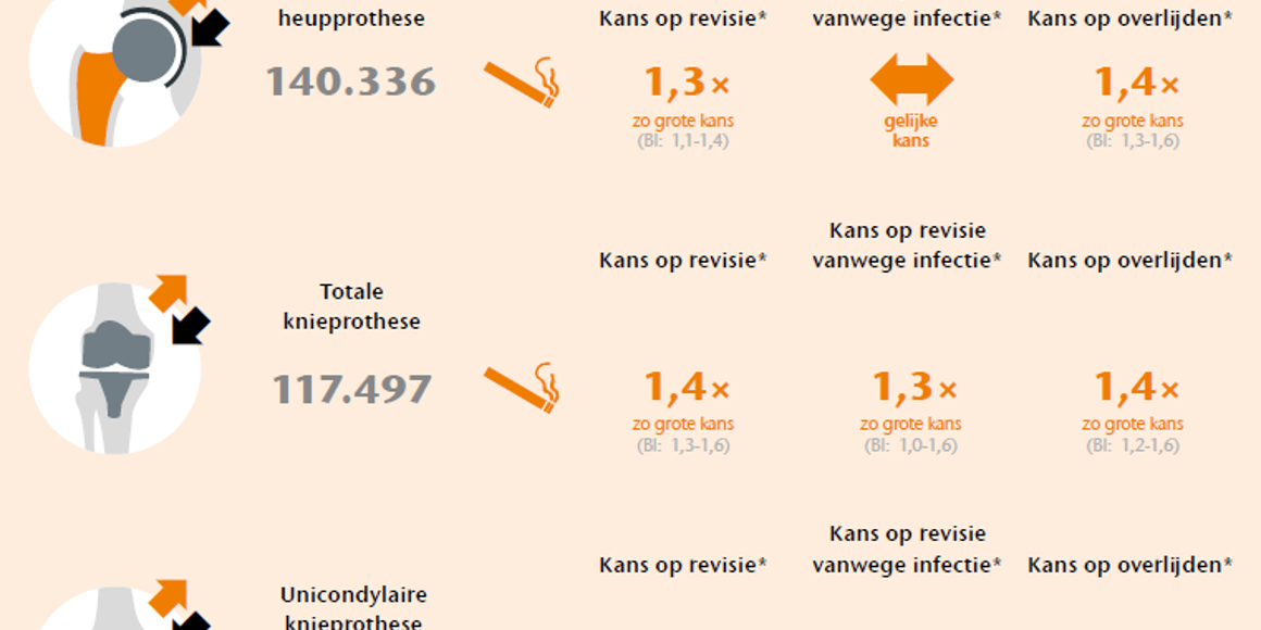 Publicatie in Acta Orthopaedica: Rokers hogere kans op revisie of overlijden binnen 2 jaar na heup- of knieprothese