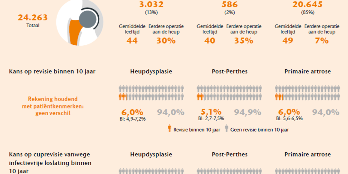 Het onderzoek is uitgevoerd met LROI-data door Michaël Bus, Maaike Gademan, Marta Fiocco, Rob Nelissen en Pieter Bas de Witte. Zij concludeerden dat patiënten tot 55 jaar die een totale heupprothese kregen vanwege een heupaandoening in de kindertijd geen hogere kans hebben op revisie binnen 10 jaar dan patiënten onder de 55 jaar die een totale heupprothese kregen vanwege primaire artrose. Hoewel het in algemene zin aan te bevelen valt om terughoudend te zijn bij het plaatsen van een prothese op jonge leeftijd, lijkt een totale heupprothese na een heupaandoening op de kinderleeftijd op zichzelf geen hogere kans op een revisie op middellange tot lange termijn te geven.