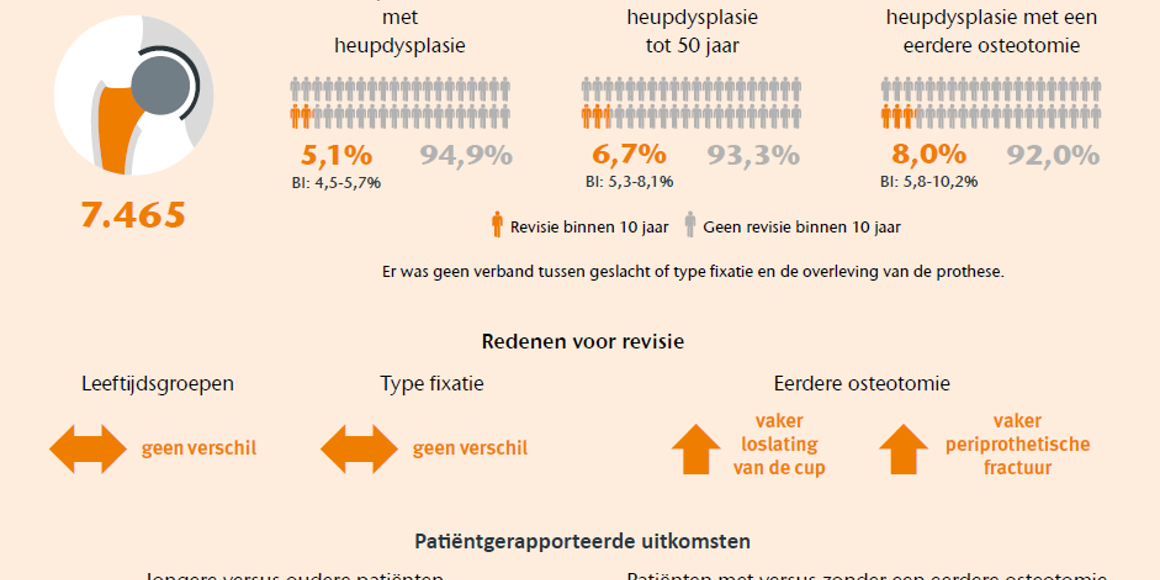 Het onderzoek is uitgevoerd met LROI-data door Milou Hüsken, Joëll Magré, Koen Willemsen, Liza van Steenbergen, Mirthe van Veghel, Harrie Weinans, Ralph Sakkers, Joris Bekkers en Bart van der Wal. Zij concludeerden dat een totale heupprothese bij mensen met heupdysplasie over het algemeen een goede levensduur heeft, met een 10-jaars overleving van bijna 95%. Bij jongere patiënten en mensen die eerder een osteotomie ondergingen, lijkt er echter een hogere kans op een revisie-ingreep en slechtere zelfgerapporteerde uitkomsten. Dit bevestigt dat er bij heupdysplasie geen standaard operatie bestaat en een patiënt specifieke behandeling belangrijk blijft.