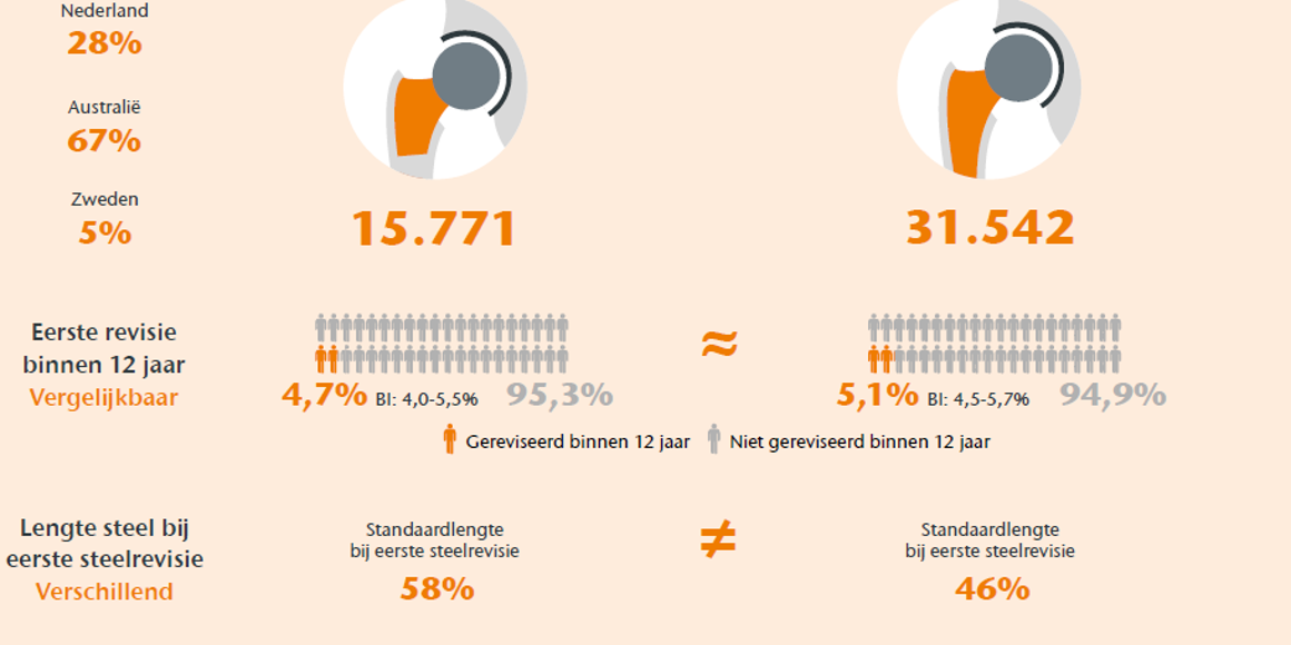 Het onderzoek is uitgevoerd met LROI-data door Karin Rilby, Mirthe van Veghel, Maziar Mohaddes, Liza van Steenbergen, Peter Lewis, Johan Kärrholm, Wim Schreurs en Gerjon Hannink. Zij concludeerden dat er geen verschillen zijn in eerste revisie- en re-revisiepercentages tussen totale heupprothesen met een ongecementeerde korte steel en een standaard steel. Korte stelen lijken dus net zo goed te presteren als standaard stelen bij totale heupprothesen. Bij revisies van korte stelen kiezen orthopedisch chirurgen vaker voor een standaard steel dan voor een langere revisiesteel. Dit kan erop wijzen dat korte stelen een botbesparend effect hebben wanneer ze gereviseerd moeten worden. Om dit te bevestigen is verder onderzoek nodig.