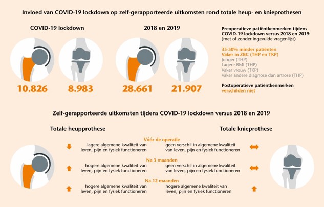Tijdens de eerste COVID-19 lockdown moest electieve zorg, waaronder primaire heup- en knieprothesiologie, plaatsmaken voor COVID-19 zorg. Hierop werd door de Nederlandse Orthopaedische Vereniging geadviseerd om alleen patiënten te