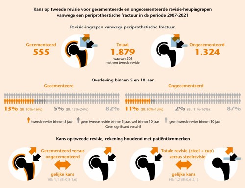 Vergelijkbare overleving voor gecementeerde en ongecementeerde revisiestelen na een eerste revisie vanwege periprothetische fractuur
