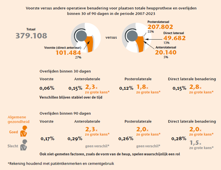 Operatieve benadering voor een totale heupprothese en overlijden binnen 30 of 90 dagen
