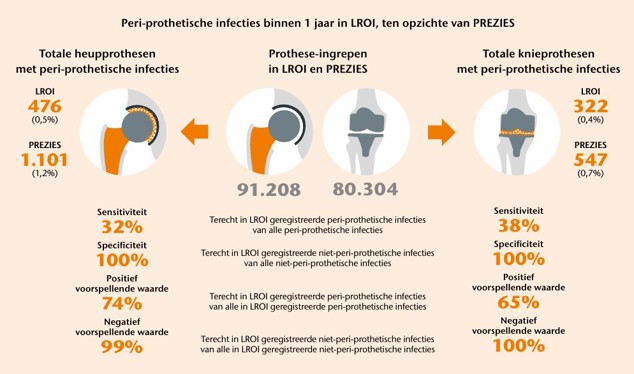 in deze studie peri-prothetische infecties na een totale heup- of knieprothese in de LROI vergeleken met gegevens uit de PREventie van ZIEkenhuisinfecties door Surveillance (PREZIES). PREZIES verzamelt gegevens over postoperatieve wondinfecties in een landelijk registratiesysteem voor infectieziekten.